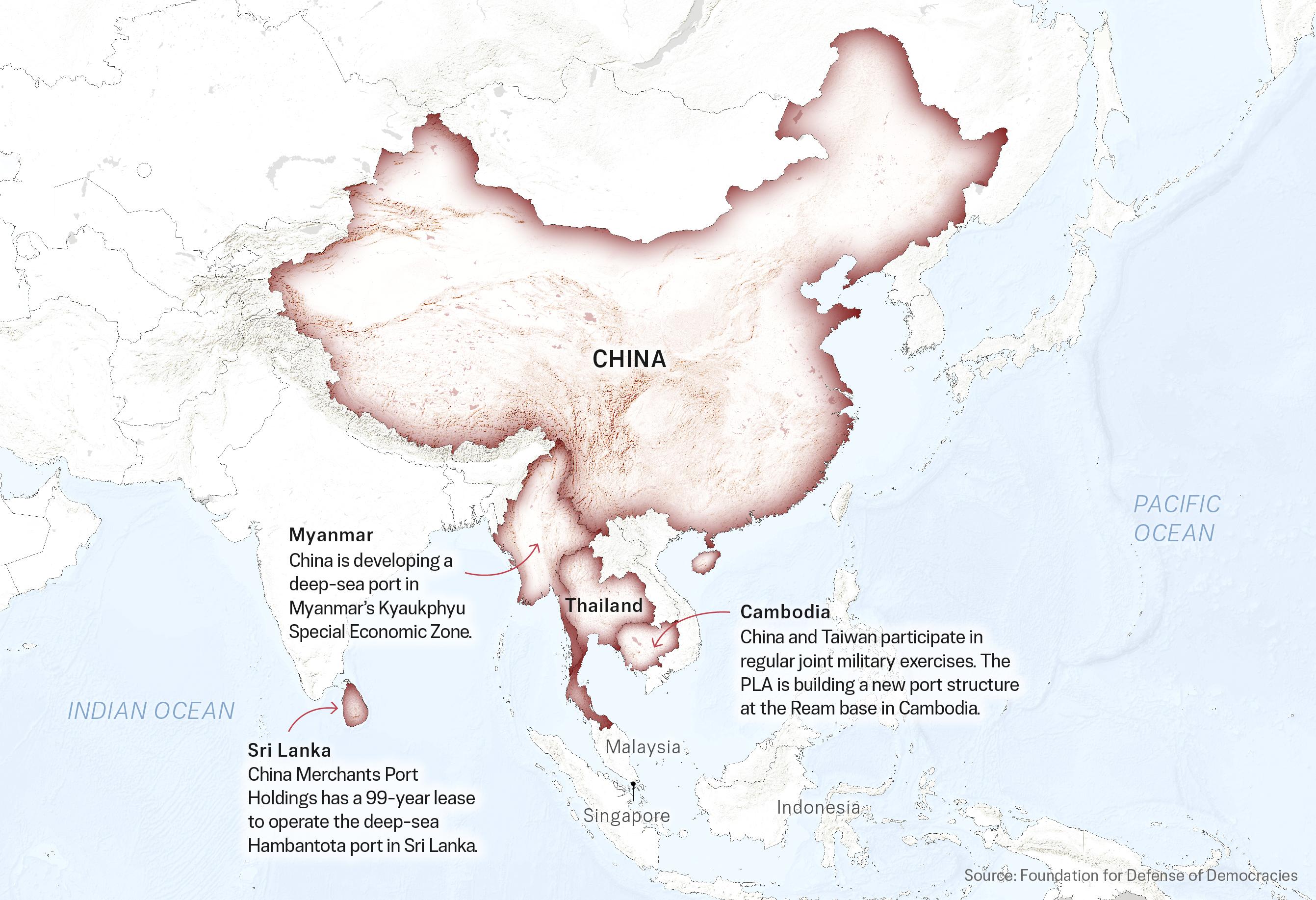 In Maps: China’s Military Activity in the Indo-PacificChina is expanding its military operations and infrastructure throughout the Indo-Pacific region.