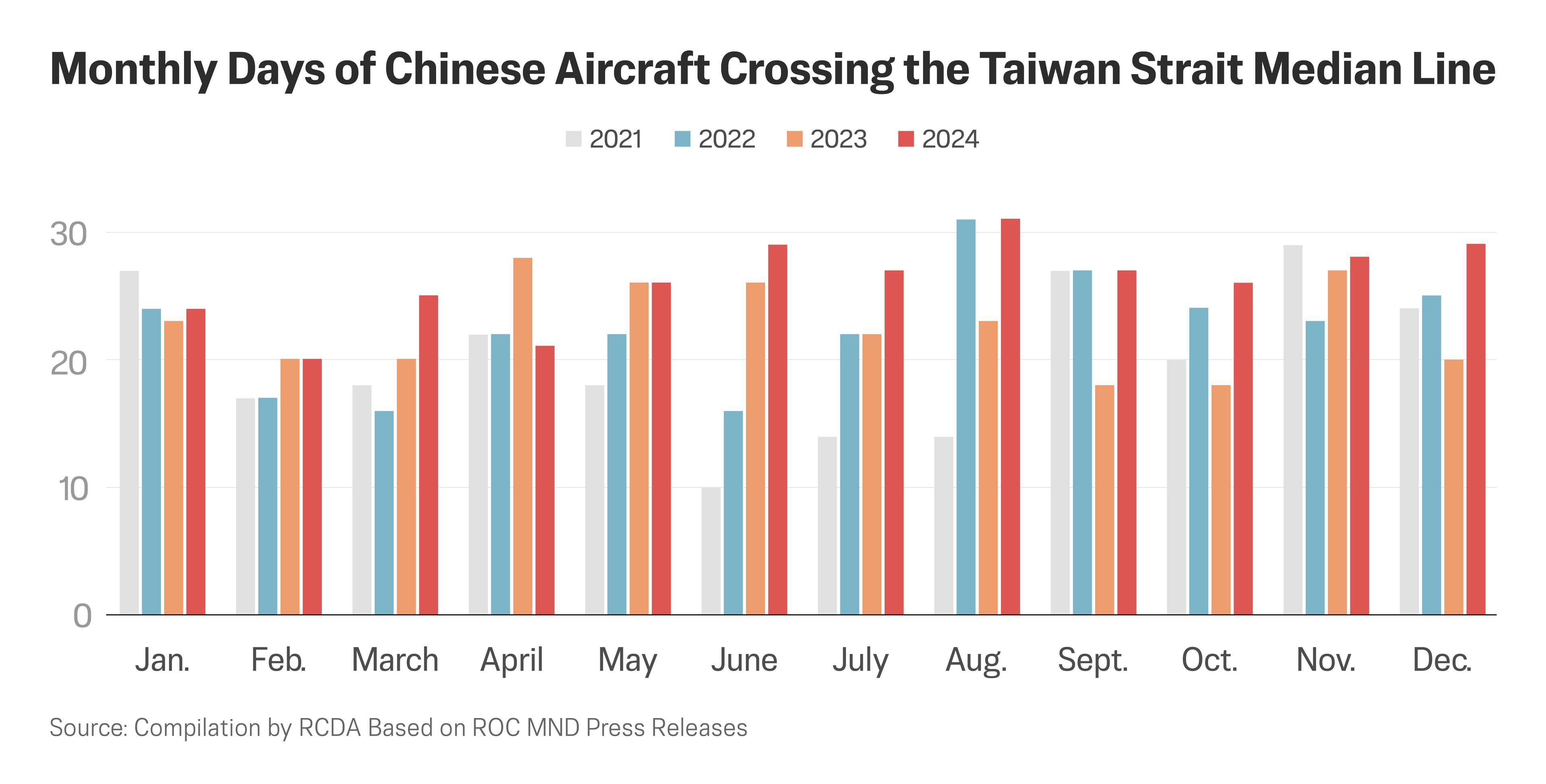 One key metric of this aggression is Chinese crossings of the so-called median line, a boundary drawn roughly down the middle of the strait between China and Taiwan.