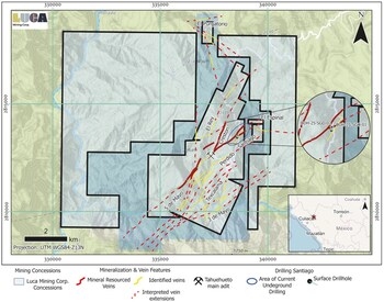 VANCOUVER, BC, Sept. 8, 2025 /CNW/ - Luca Mining Corp. ("Luca" or the "Company") (TSXV: LUCA) (OTCQX: LUCMF) (Frankfurt: Z68) is pleased to report new high-grade results from its ongoing Phase 2, 5,000 metre underground drill program and the first surface drilling at the Santiago Deposit of the Tahuehueto Gold-Silver Mine in Durango, Mexico.