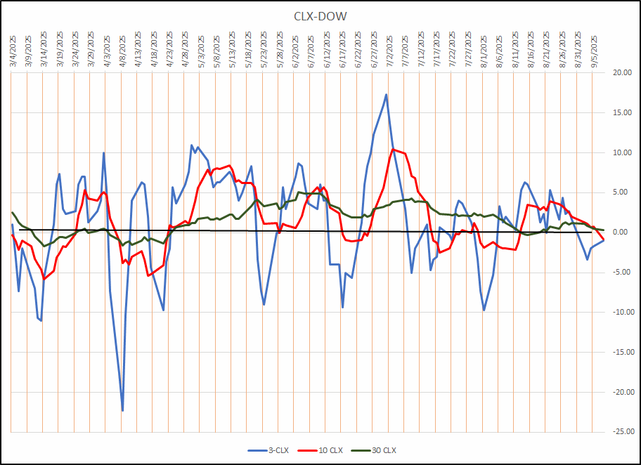 9-08-2025, Dow CLX charts, got Dow at -3 n -2