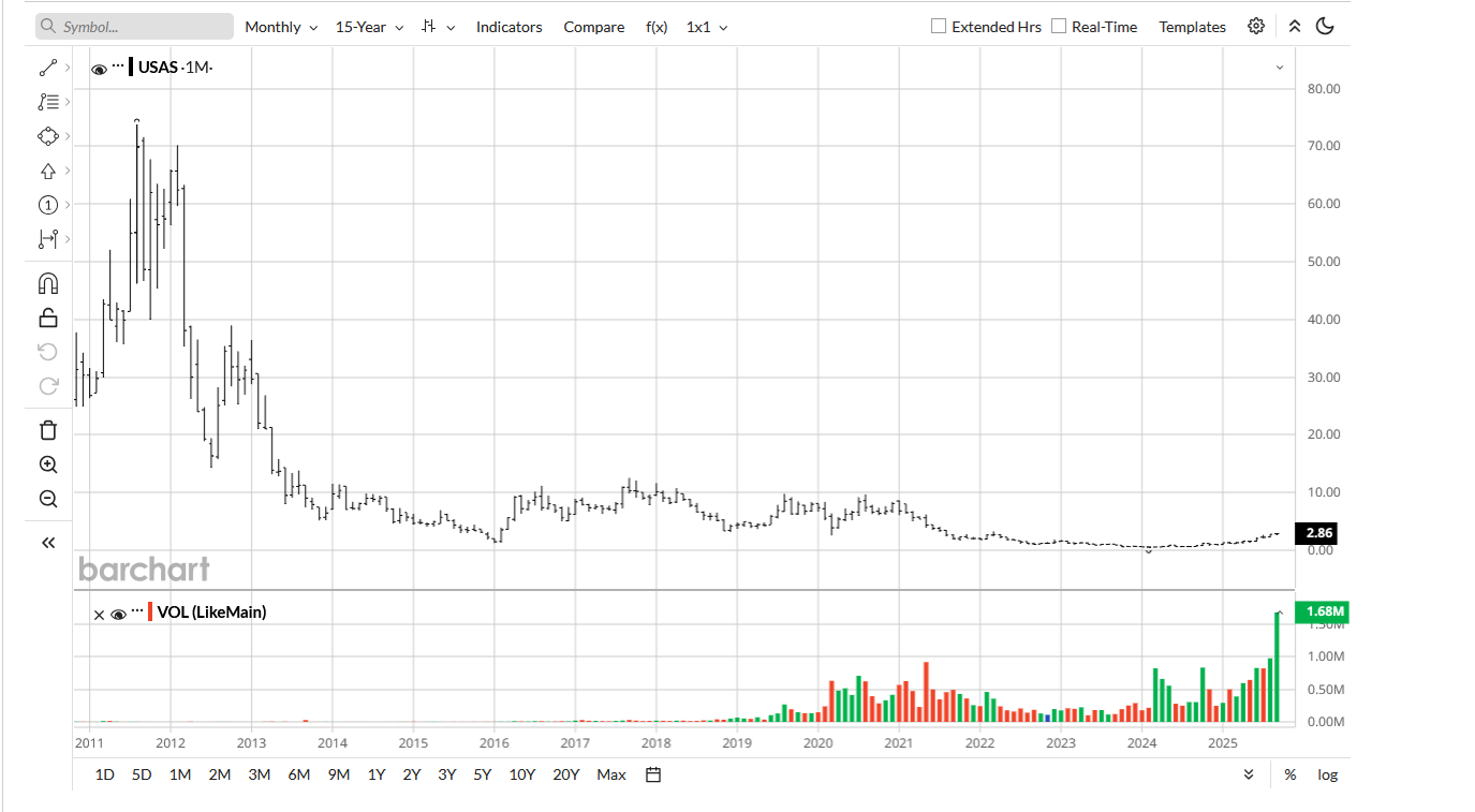 I'm long three gold miners in my portfolio - DRD from $13.28, THM from $1.15, and USAS from $1.12 ($0.45 pre-reverse split).