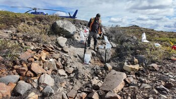 Fig. 3: Sampling at the Spears Lake area. Note that grab samples are selective by nature and may not be representative of mineralized zones. Source: SPC Nickel (CNW Group/SPC Nickel Corp.)