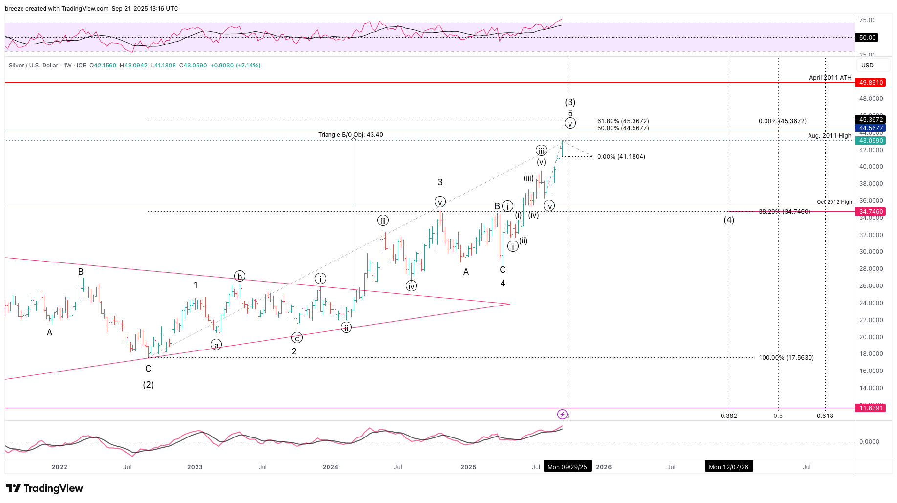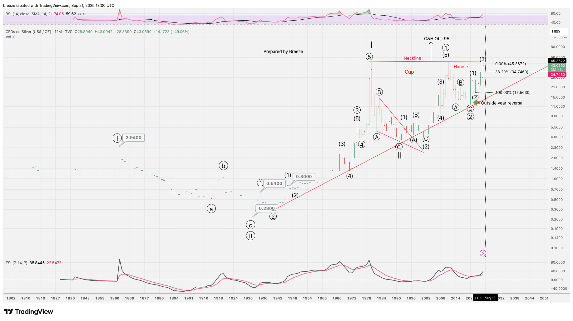 Pedro, Below are two Silver Charts. The first is a Yearly Chart from the year 1802 with a Wave Count. The second chart is a weekly chart that focuses on the two questions you asked.
