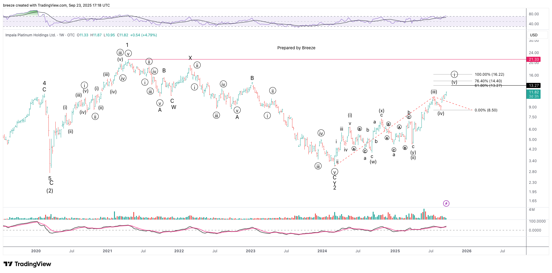 IMPUY Wave Count Update. Wave (v) of Minute Wave (circle) i is in play with a target of 13.27. But it could spike toward the 100% price extension level. Breeze