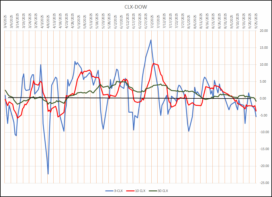 9-25-2025, Dow CLX charts, Got Dow at -10 n -5