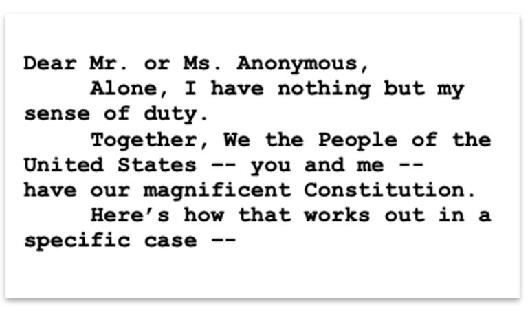 The judge then returned to the anonymous postcard writer to whom his opinion is addressed. He wrote, “I hope you found this helpful. Thanks for writing. It shows you care. You should.”