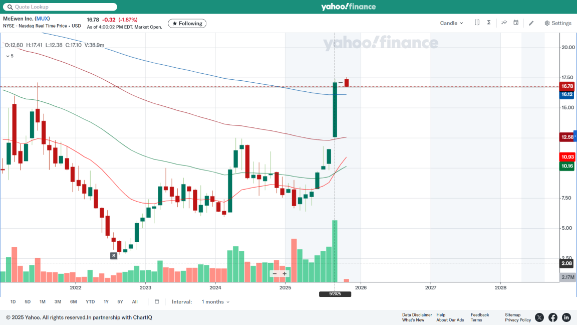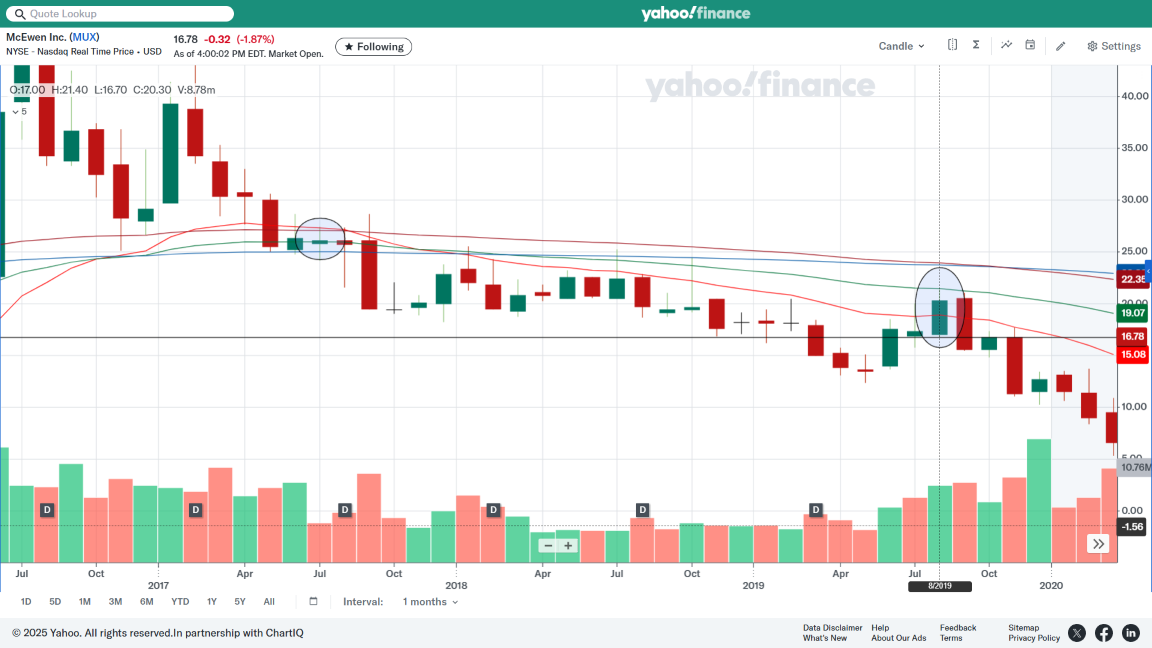 Also, I see the stock closed above the 20-month EMA as it tested the 100 below, also, the 20 month EMA crossed above the 50 this past month, some backfill might happen, the monthly pivot is quite a ways down, but we know "anything can happen with MUX".