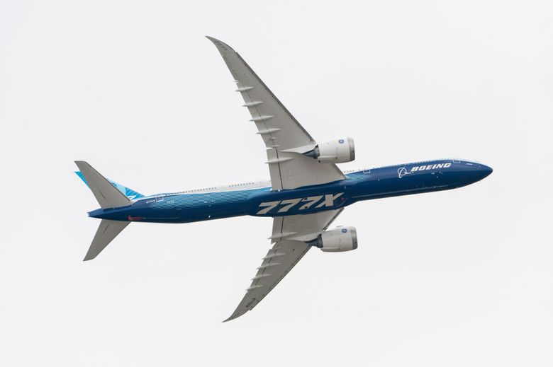 A Boeing 777X at Boeing Field in Seattle. (David Ryder / Bloomberg)