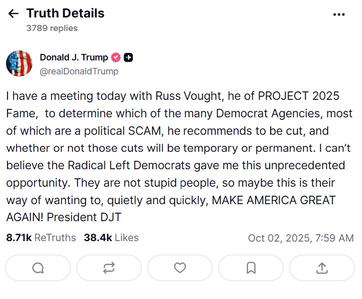 Senate Republican Leader John Thune is panicking the Democrats, warning that Russ Vought is a madman. He’s out of control!