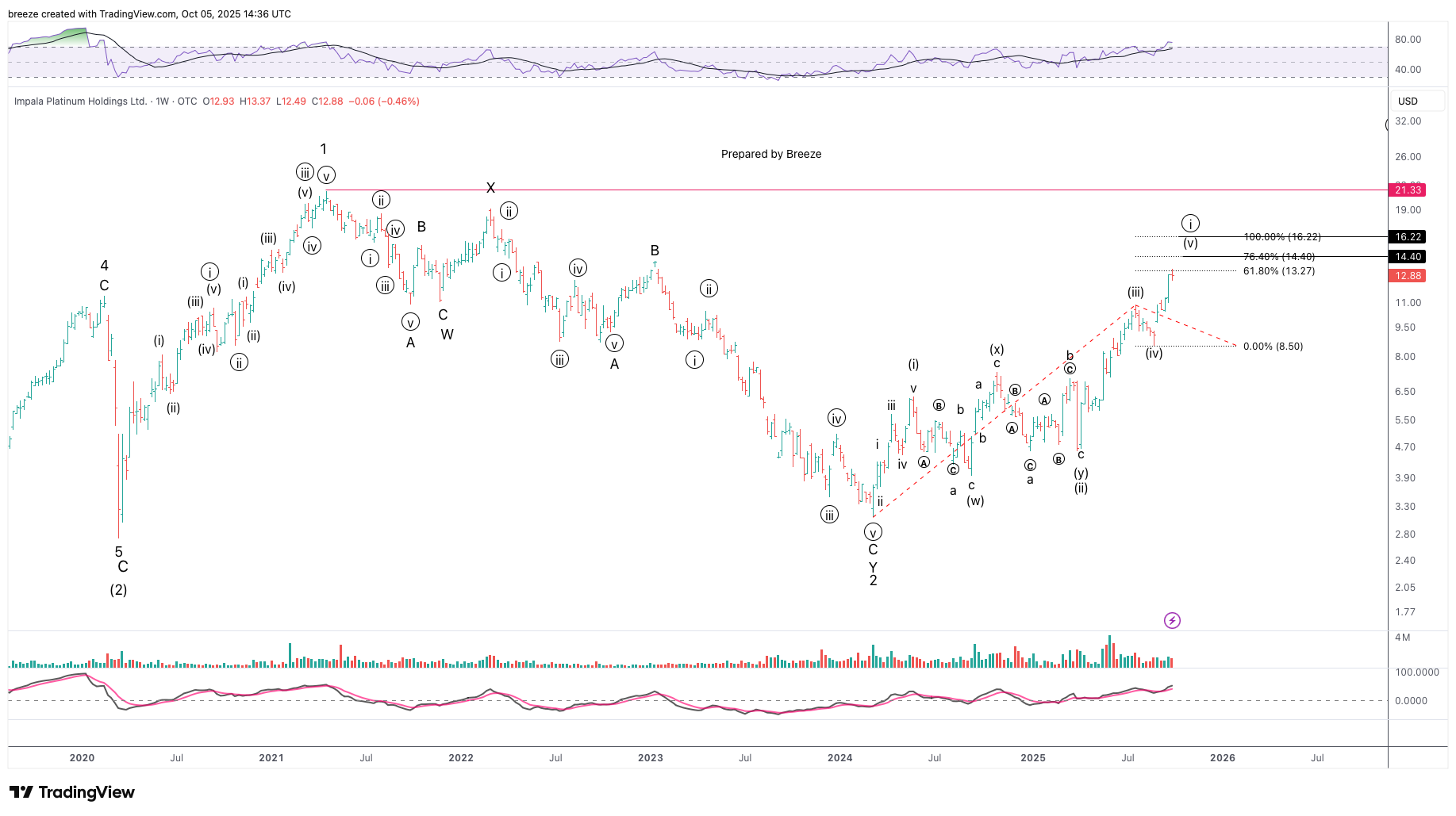IMPUY Wave Count Update. Wave (v) of Intermediate Wace (circle) I is in play with a target range of 14-16. Breeze