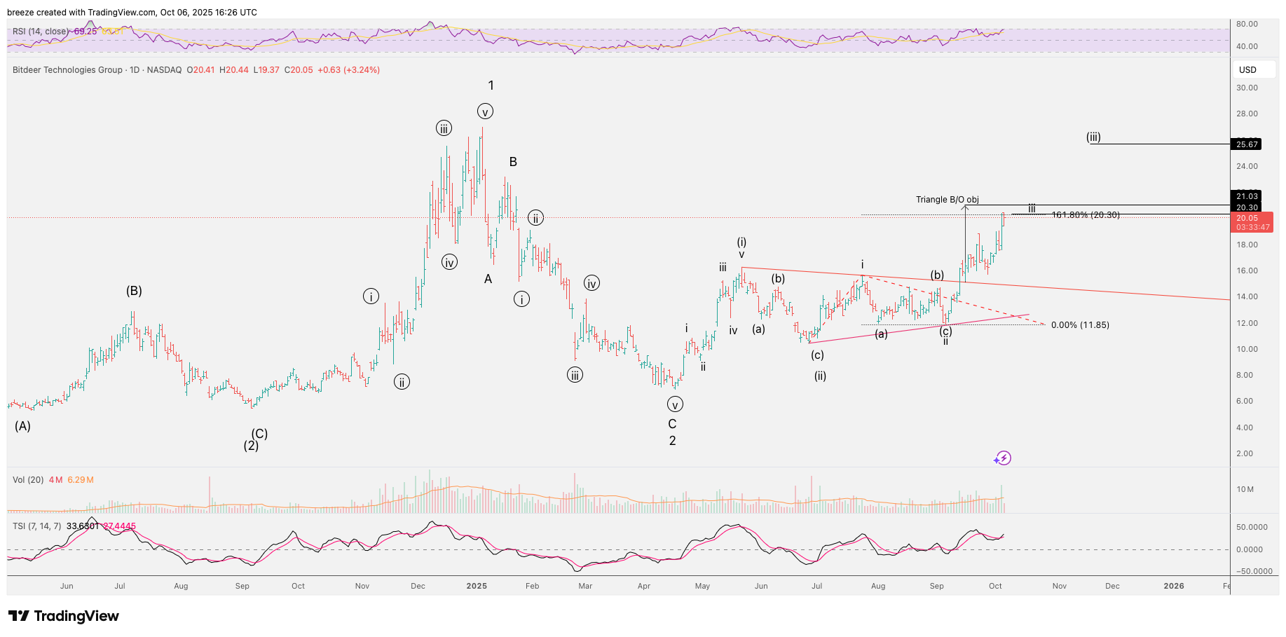 BTDR Wave Count Update. Wave (iii) is in play with a target of 25.67. That target for Wave iii looks like it will be exceeded. Breeze