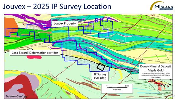 MONTREAL, Oct. 07, 2025 (GLOBE NEWSWIRE) -- Midland Exploration Inc. (“Midland”) (TSX-V: MD) is pleased to announce the execution of an induced polarization (IP) survey on its Jouvex gold property, wholly owned by Midland and located approximately 10 kilometres northwest of the Douay deposit.