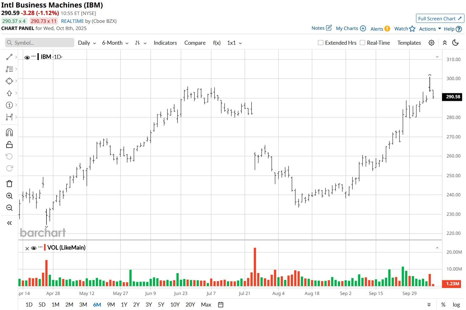 IBM stock has been in a sharp uptrend over the past two months and is currently up some 25% versus its August low.