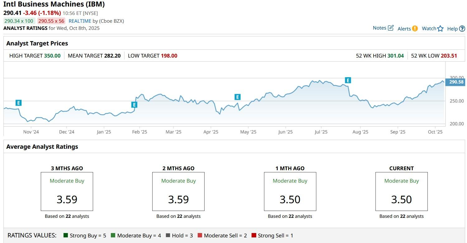 The consensus rating on IBM shares remains at “ Moderate Buy” with price targets going as high as $350, indicating potential upside of another 20% from here.