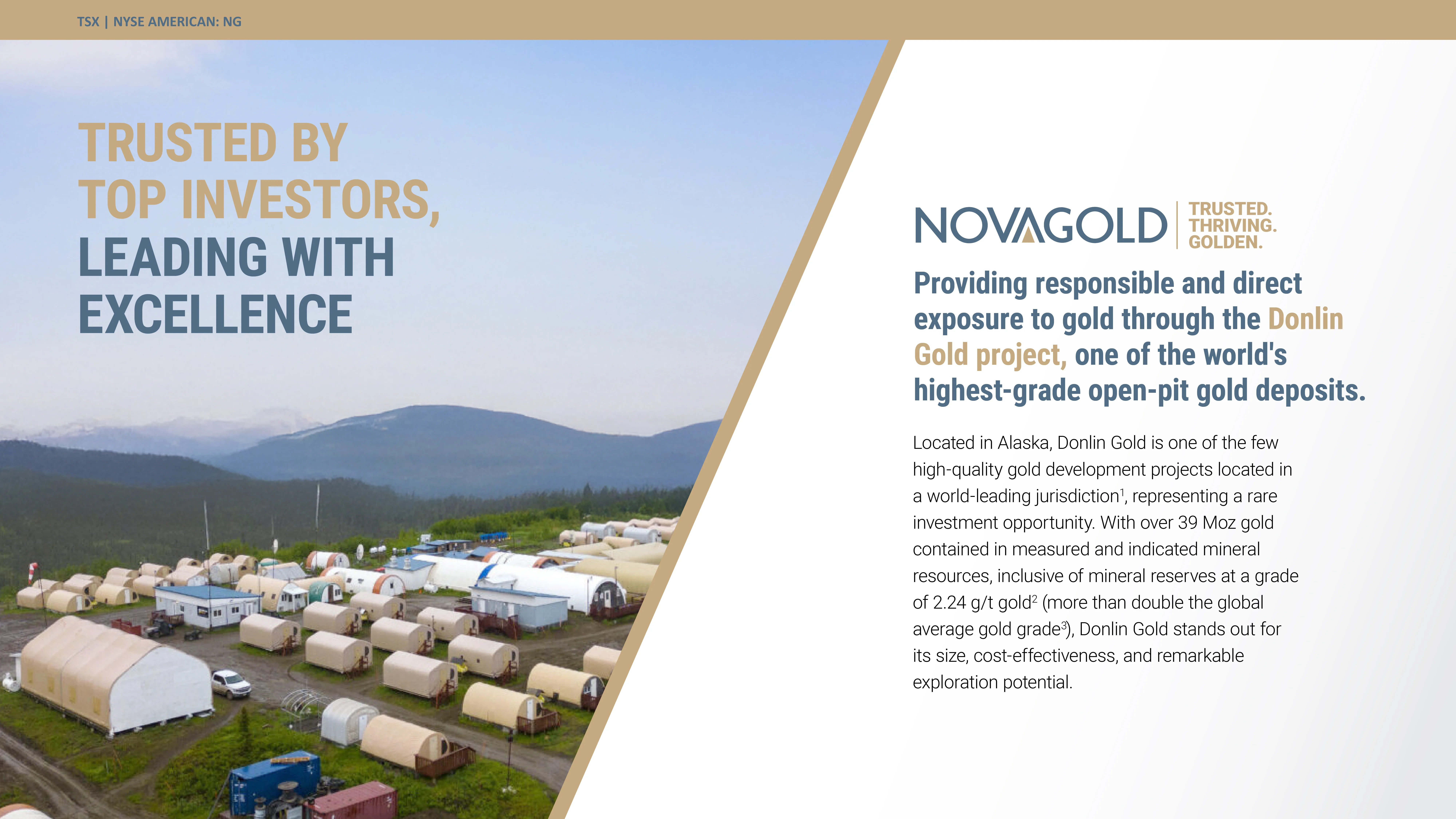 NOVAGOLD is a pure gold play focused on Alaska’s Donlin Gold project, offering investors extraordinary leverage to gold.