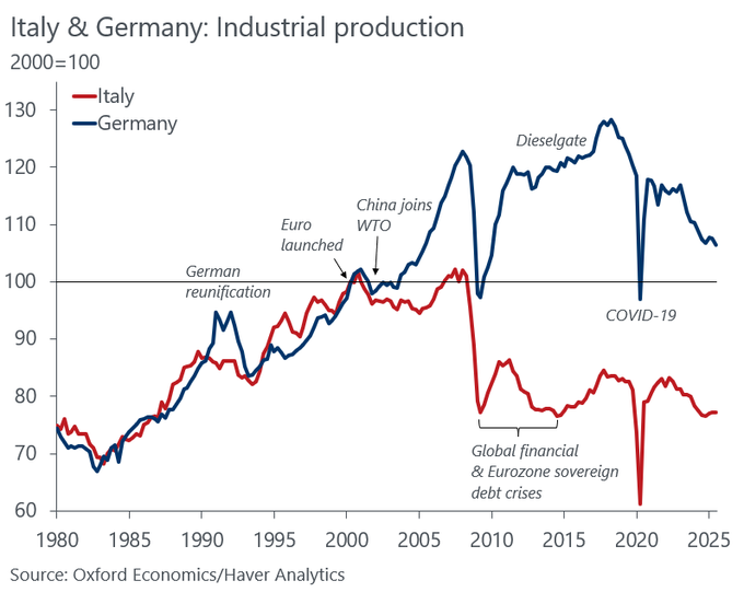 The crown jewels of European industry - Italy and Germany - are in serious long term decline.