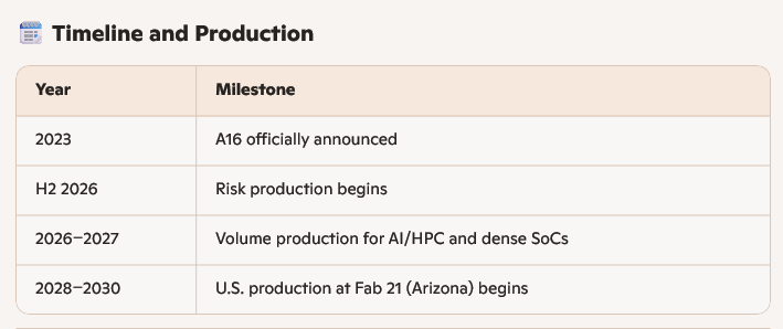 • Tooling: Fab 21 in Arizona will support A16 alongside N2/N2P nodes