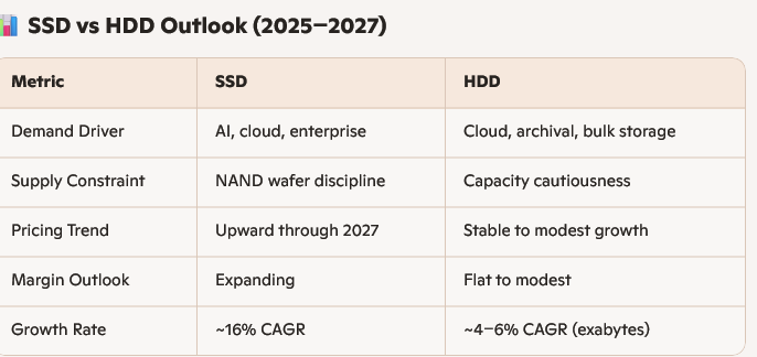 Copilot: That quote refers to the SSD market, not HDD. The context is rising demand for AI-optimized enterprise storage, tight NAND supply, and strategic wafer allocation—all of which are driving SSD pricing and margins higher through 2026–2027.