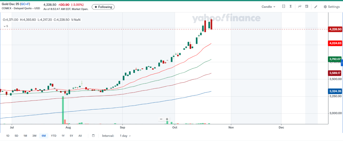 At 7.30am mountain time - Gold was down 3%, ($130.90.)