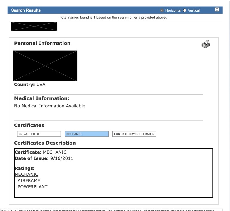 Would you trust Ron? We could ask him to review and verify the certs are in my name and confirm that information is available on the FAA's website.