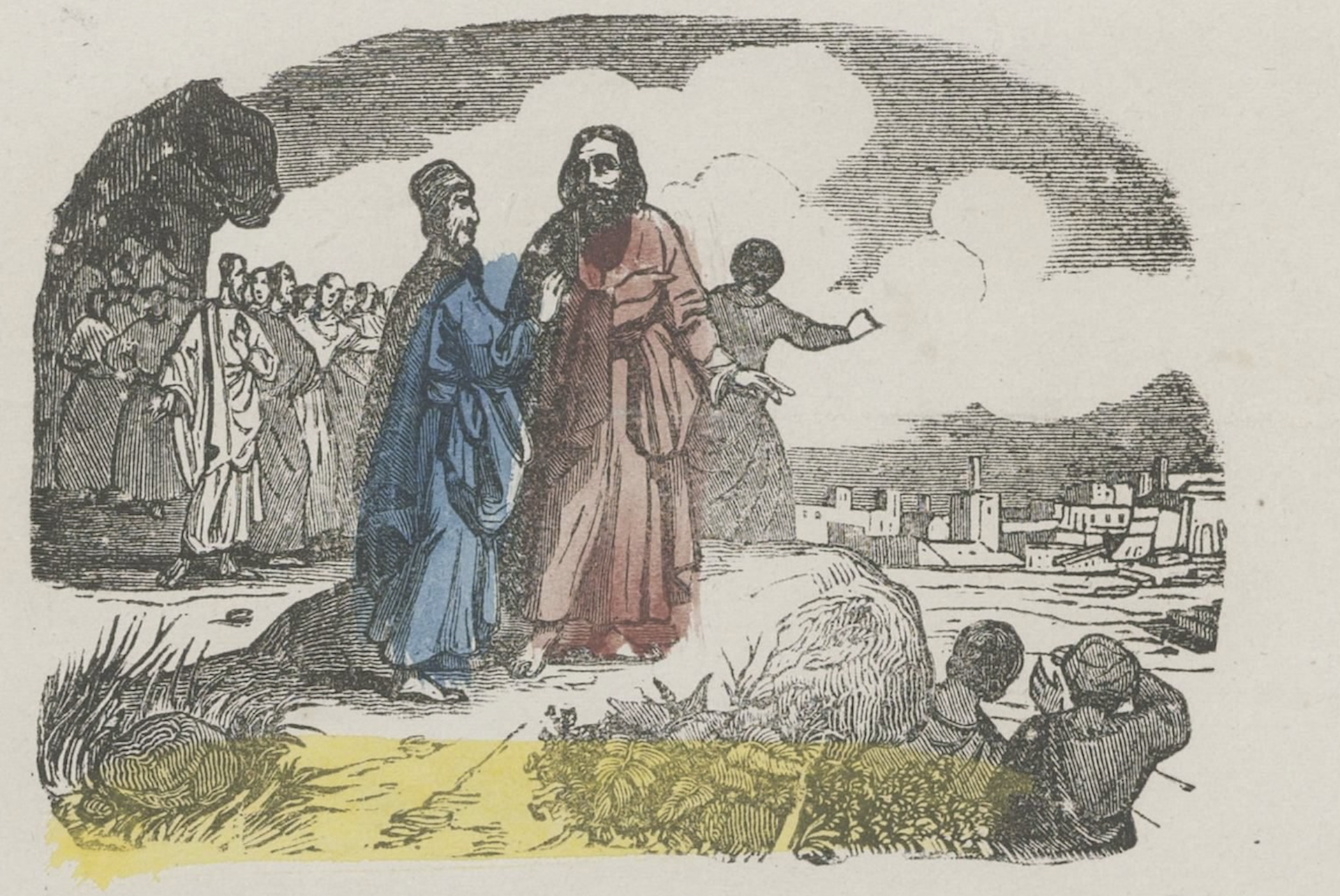 Zerubbabel, depicted in this etching from c.1850, received biblical visions of the apocalypse. Rijksmuseum One mid-eighth century tradition reported his hair was dyed, another that it was red, and another that his face was hairy and his forehead leprous. Several reports had him as bald. His eyes were variously malformed – small, deep, red and crooked, one eye small and the other big.