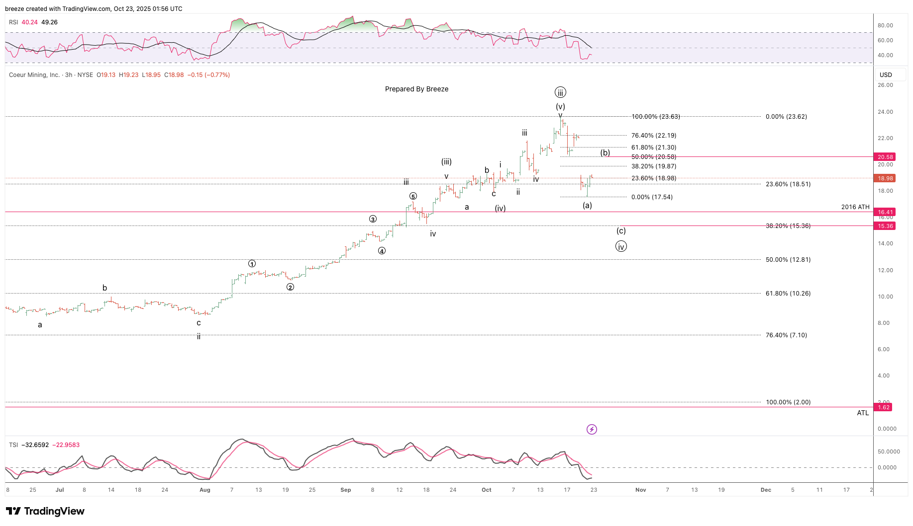 CDE Wave Count Update. Wave (a) of Minute Wave (circle) iv appears complete if so then Wave (b) is in pla is in play and typically retraces to the 50% level. Breeze