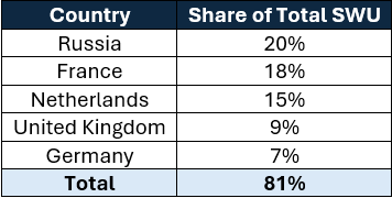 · US-origin SWU: 19%; foreign-origin SWU: 81%.