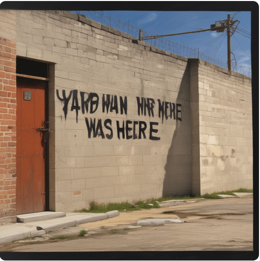 Hmmm, looks like yard-man has been busy himself writing his name on all the prison walls he's been to...