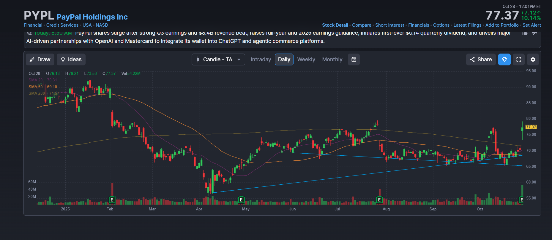 Speaking of laggards. PYPL up today on news they have signed an agreement with OpenAI for in app purchases.