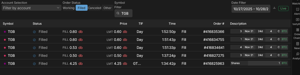 I liked the initial 3 hour chart scoring on Tasty 4 of 4 going up hence > TRIGGER HAPPY