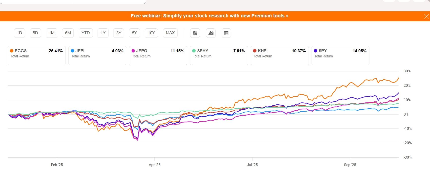 I sold 27% of my JEPI position today. JEPI helped revolutionize the equity/option fund category, but since then there have been many come to market that I like much better. The funds were used to purchase EGGS which has outperformed SPY since its inception while paying 12+% monthly distribution.