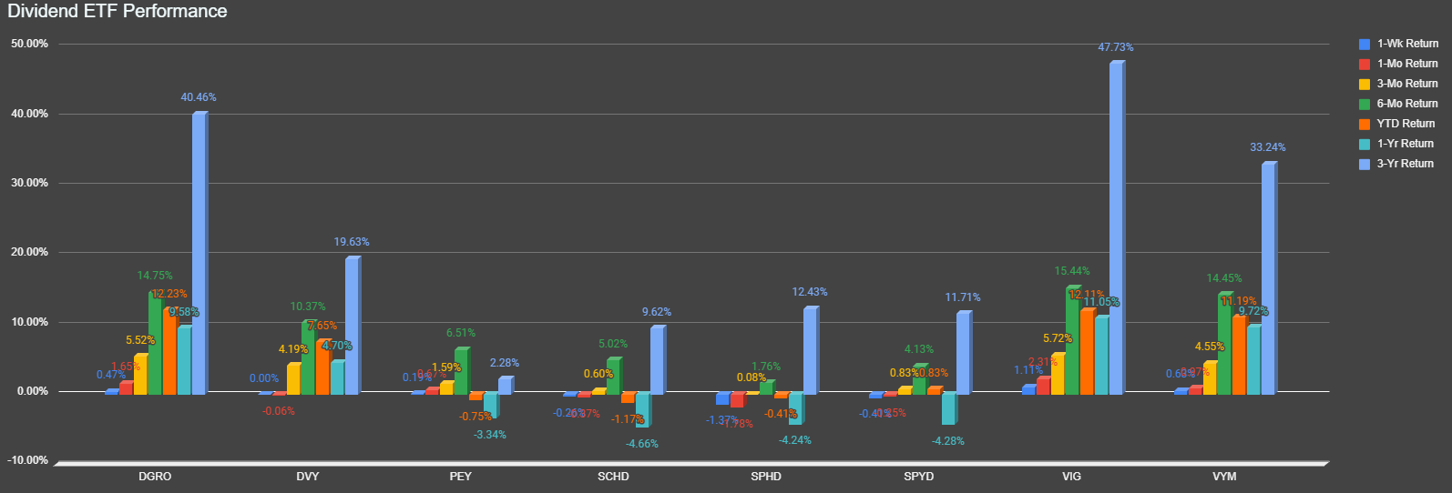 Chart to compare common dividend ETFs with SCHD (warning: it's depressing):