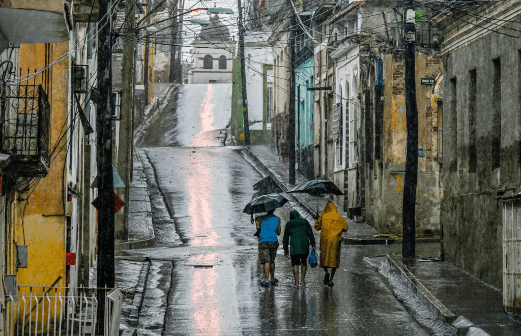 People walk in a street before Hurricane Melissa hits the city of Santiago de Cuba on Tuesday. (Yamil Lage/AFP/Getty Images)