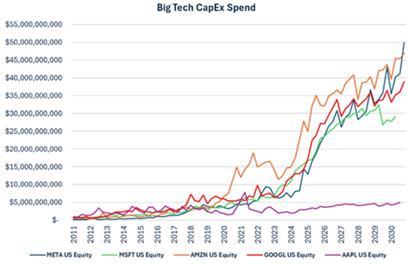 Figure 1: Quarterly CapEx Spend: MSFT, AMZN, GOOGL, META, APPL