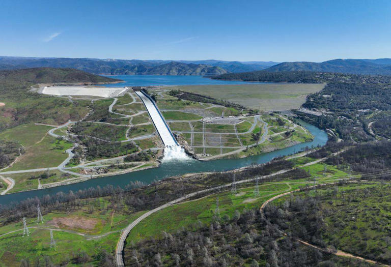 A drone view of Oroville Dam and main spillway on March 11, 2025. SB 72 requires the Department of Water Resources to set 2050 urban, agricultural, tribal and environmental water targets, prompting debate over storage.