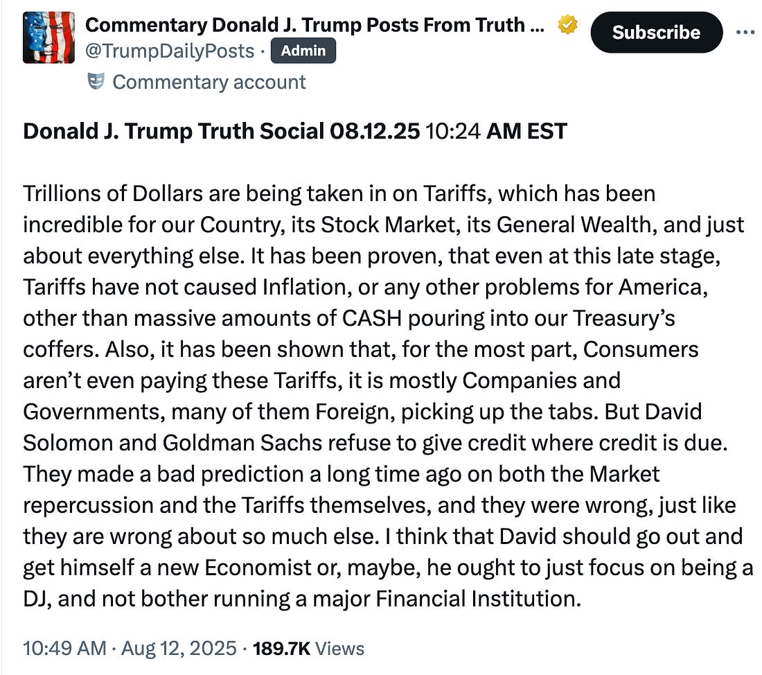 So the tariffs are legal because they aren’t revenue-raising; also, look at how much revenue they’re raising! The fact that Trump’s own statements completely contradict his lawyers’ arguments explains why even a Supreme Court that normally bends itself into a pretzel to ratify administration policies will probably find his “emergency” tariffs a pretzel too far.