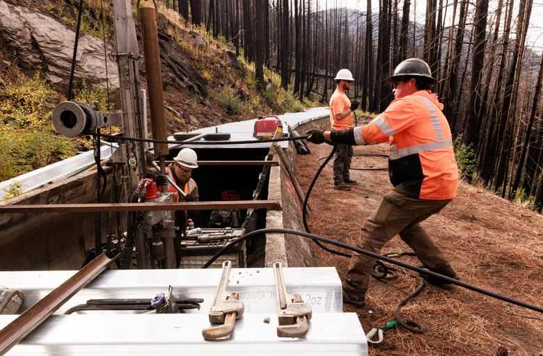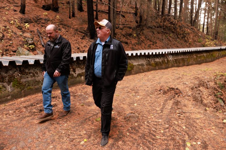 Now, the leaks are perhaps the least of their worries, Okelberry said. They’re bracing for landslides and debris flows, which could easily push down the slopes, cracking, tearing, clogging or burying the flume.