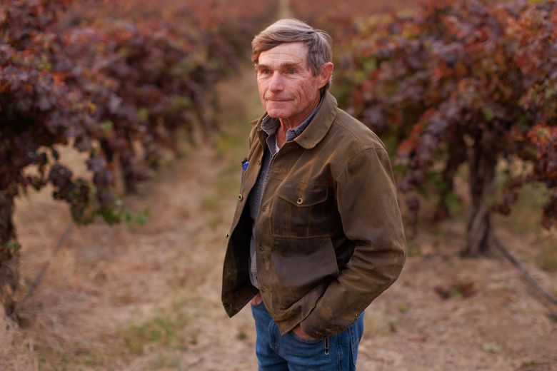 Grape grower Jim Willard, on the board of the Roza Irrigation District, stands in his cabernet sauvignon fields near Prosser. (Erika Schultz / The Seattle Times)
