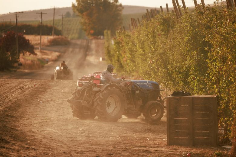 PROSSER — The conveyor belt for Jim Willard’s harvester broke as the sun rose over his field of cabernet sauvignon wine grapes, so he had to wait as workers brought it back to their shop for a quick fix.