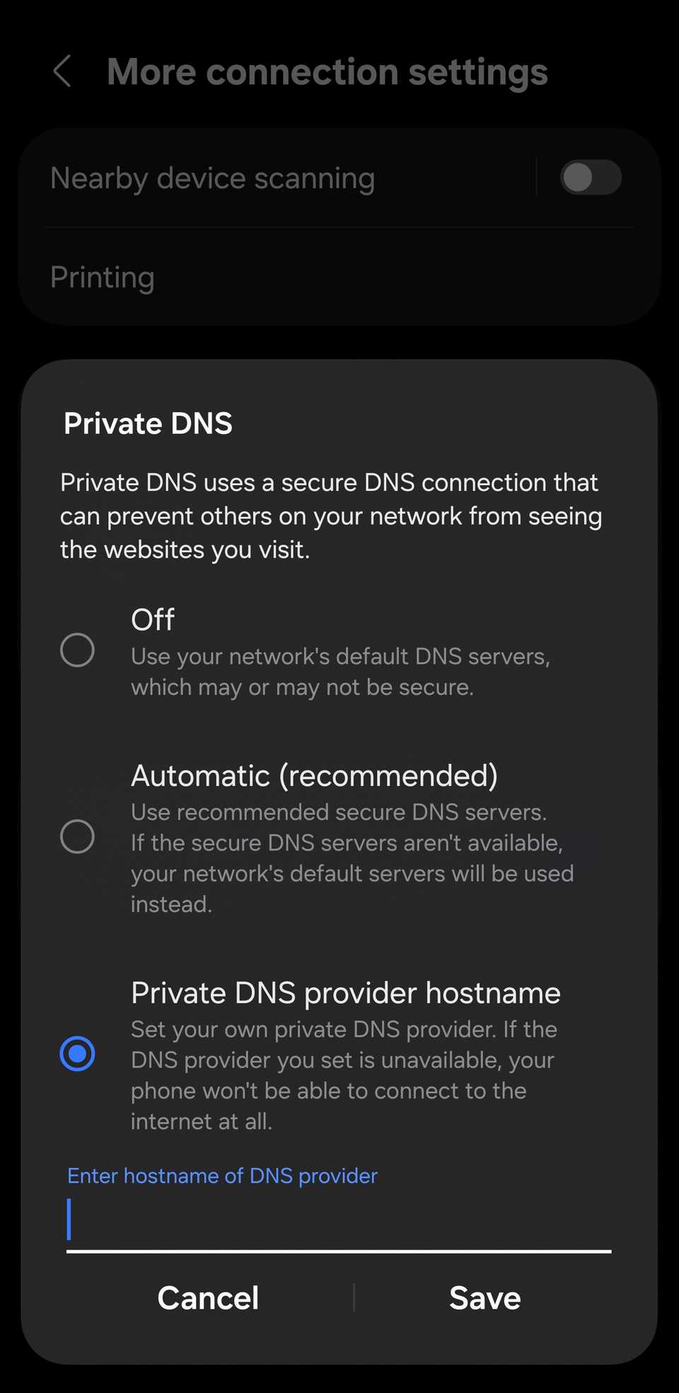 Whenever I set up a new Android phone, I change one setting before I start using it normally. I update the Private DNS provider hostname, so the phone uses an encrypted server instead of the one assigned by the network. This keeps my lookups private on shared Wi-Fi and helps avoid the unreliable or slow resolvers you sometimes find on public networks. Setting this up early also limits what the network can see and makes it harder to track which domains I access.