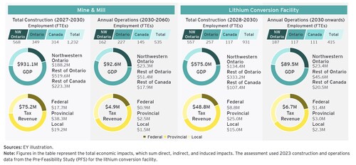 • Regional Impact (Northwestern Ontario): $134 million in GDP, 557 FTE jobs, and $15.0 million in local tax revenue.