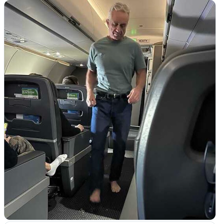 Yeah, um, so that's a picture of what appears to be RFK Jr. on a flight, shoe and sockless: