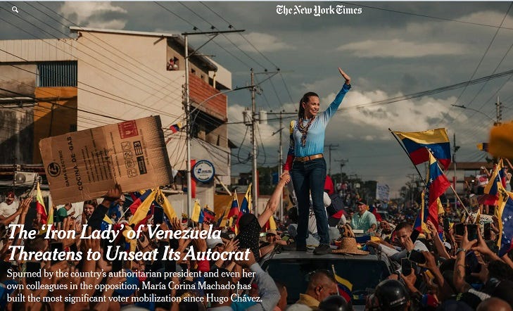 On July 24, 2024, the New York Times published a profile: “The ‘Iron Lady’ of Venezuela Threatens to Unseat Its Autocrat