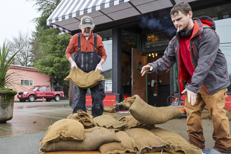 On Friday afternoon, residents of Sultan were busy cleaning up. The nearby Skykomish River had receded, but sandbags were still piled on every corner and doorstep, and many residents and business owners were dealing with waterlogged floors.