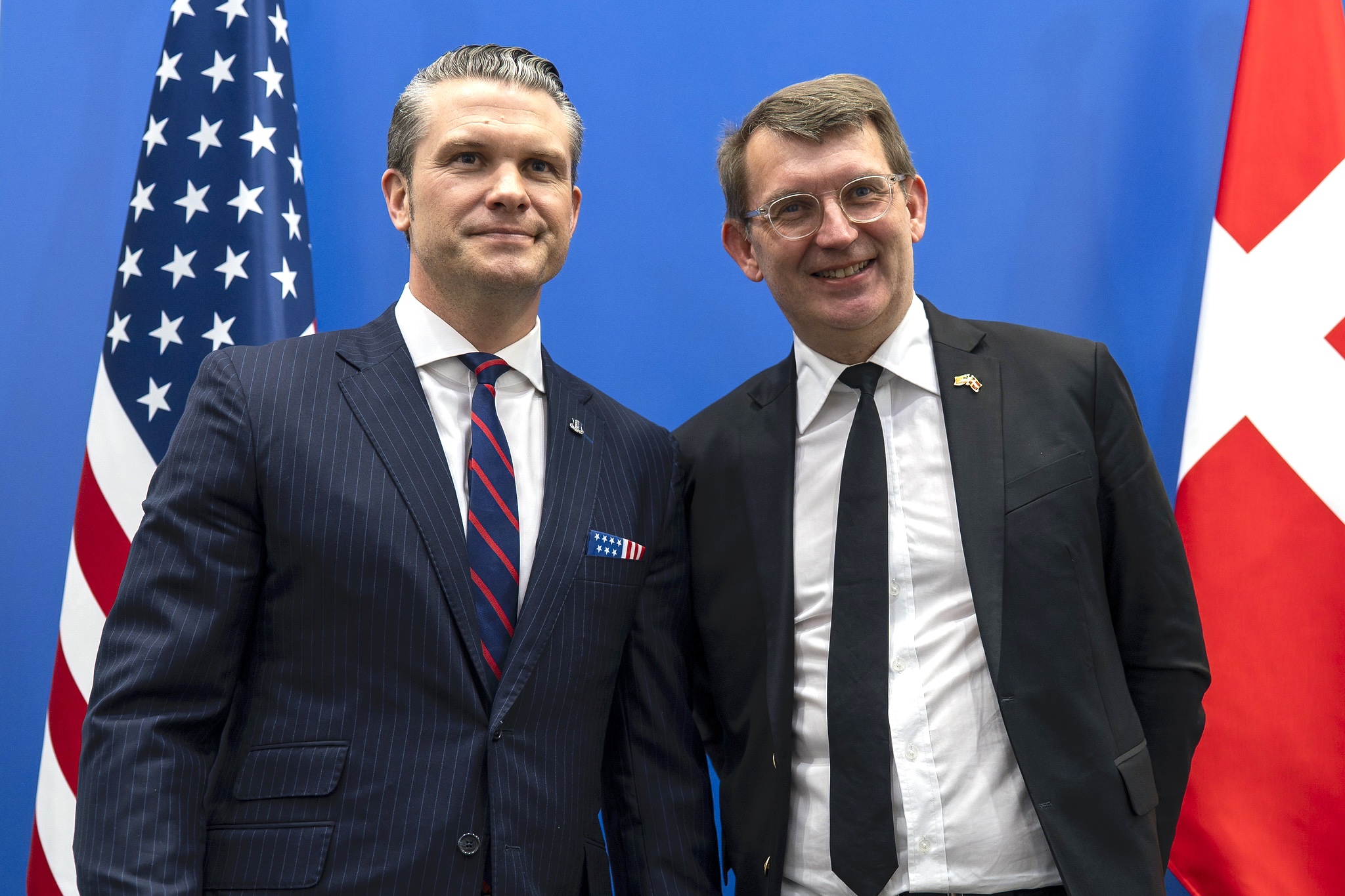 Secretary of Defense Pete Hegseth with Danish Minister of Defense Troels Lund Poulsen at NATO Headquarters in Brussels, Belgium, Feb. 12, 2025. (DoD/Alexander C. Kubitza).