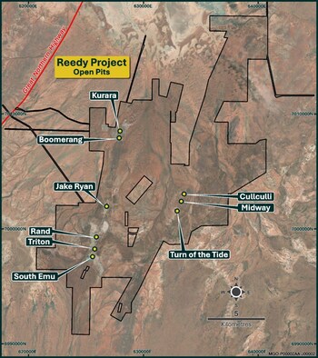 Figure 3: Reedy's Project highlighting a subset of existing open pits (CNW Group/Westgold Resources Limited)
