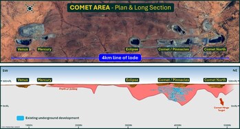 Figure 5: Comet Project highlighting a subset of existing shallow open pits (CNW Group/Westgold Resources Limited)