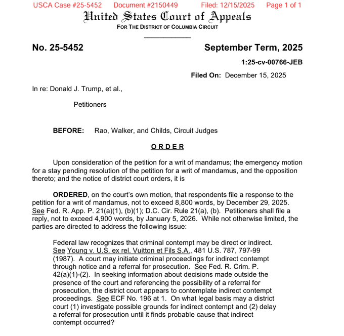The Appeals Court asks Judge Boasberg why he's ignoring federal criminal procedure (pursuing a contempt charge without first referring for prosecution).