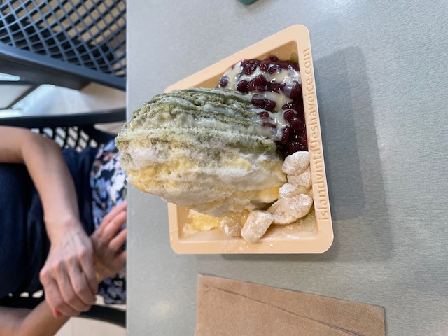 Macha flavored shaved ice in wikiki. I never had one before and it was surprising very yummy.