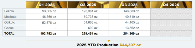 Secondly, the problems that have arisen with the Goose project should be taken into account. Despite the fact that I noted the potential for growth in gold production forecasts for future periods in the growth catalysts (since mineral reserves are larger), details of the first ore extraction turned out to be worse than expected. In this regard, we should note that gold production forecasts for this mine were lowered for Q4 2025 from the initial 80,000-110,000 ounces to 50,000-80,000 ounces. It is also worth considering that production activities at this mine are more technically complex. As a result, the initial costs (AISC) turned out to be higher than expected. Based on data for Q3, they are astronomical, at around $3,300 per ounce.